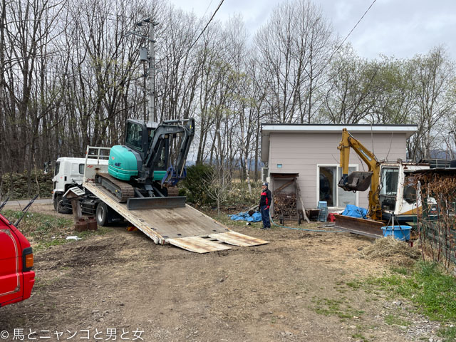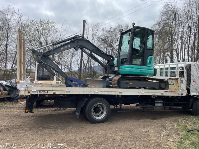 コマっちゃんとご対面。 個人で重機買って喜んどるヤツはあんまりおらんやろなぁ。コマっちゃんの重さはは3トンで「加トちゃん」は4、5トン。
