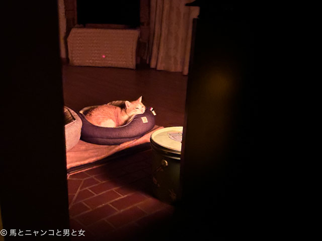 昨晩 馬の世話して部屋に入ったら薪ストーブの熱を堪能する「まっちゃん」