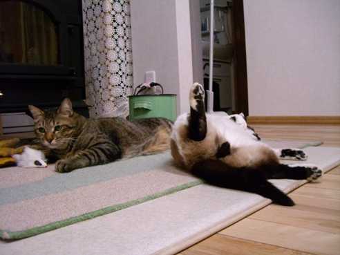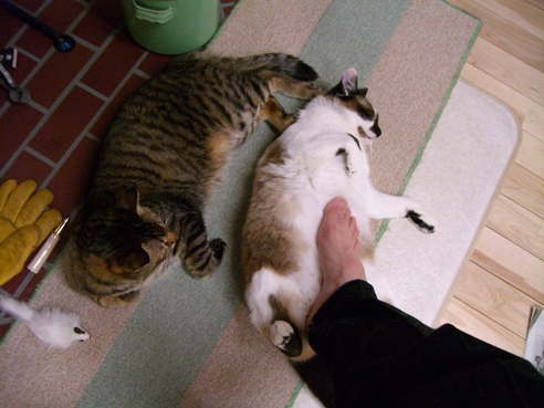 ニャンコ達が静かなな? と見てみると絵に描いたような大股開き。
