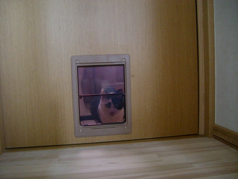 今日は休みだったので観察していると クーがニャンコ扉から入っていって用を足した。