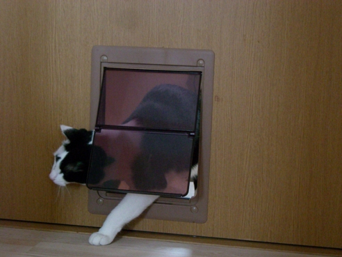今度は入るときに手で引き戸を開け 出てくるときにニャンコ扉を使ったようだ・・・