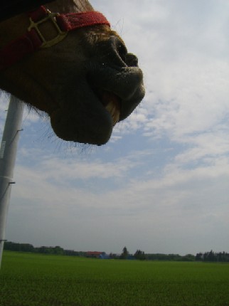 こんな感じで軽トラに馬が載ってればやはり目立ちますわな。