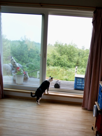 このリビングの窓の外に止まり木を作って小鳥やリスを呼べたらニャンコも満足。