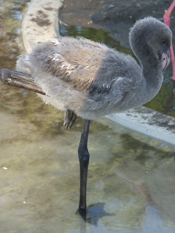 この夏に生まれたフラミンゴのヒナ。