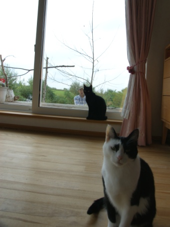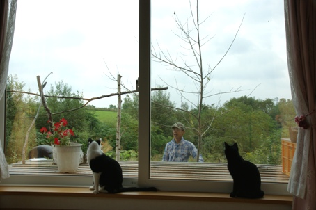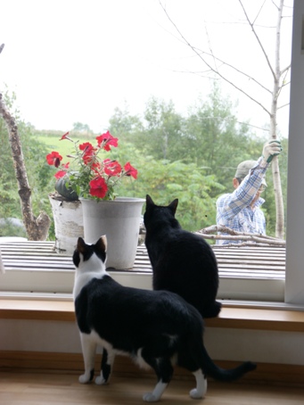 オトスケの足元の窓サッシのレールには テントウ虫が集まりだしている。