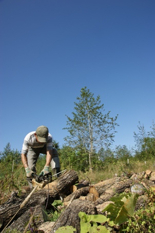 1年半前に切り倒して運んだものの手つかずになっていた木を切り刻んでいった。
