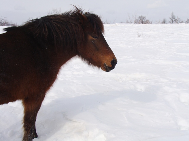 いつものように牧草地で餌をやっていたら 後ろで激しく動く気配。