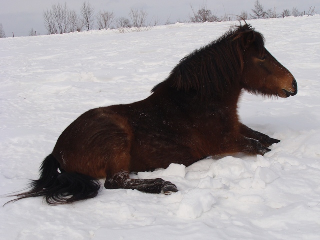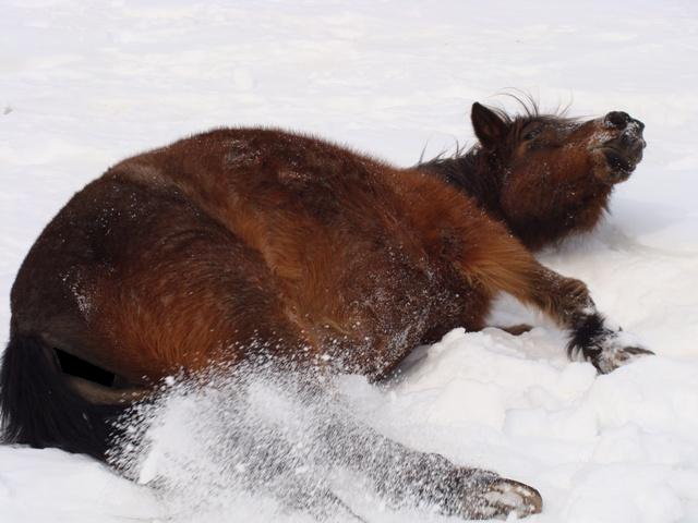 ふと振り返ると桃ちゃんが雪浴びをしていた。