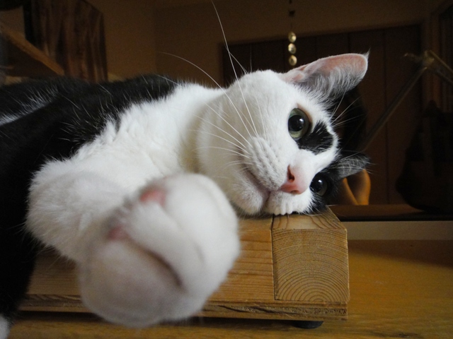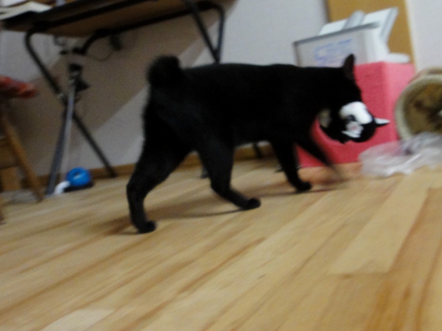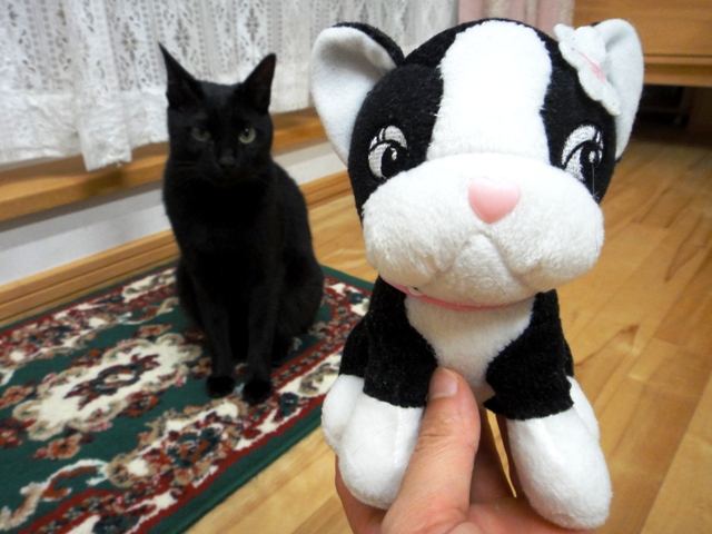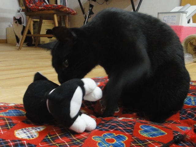 しまいこんでても仕方ないのでニャンコの遊び相手に と思ったが黒猫の眼つきが・・・