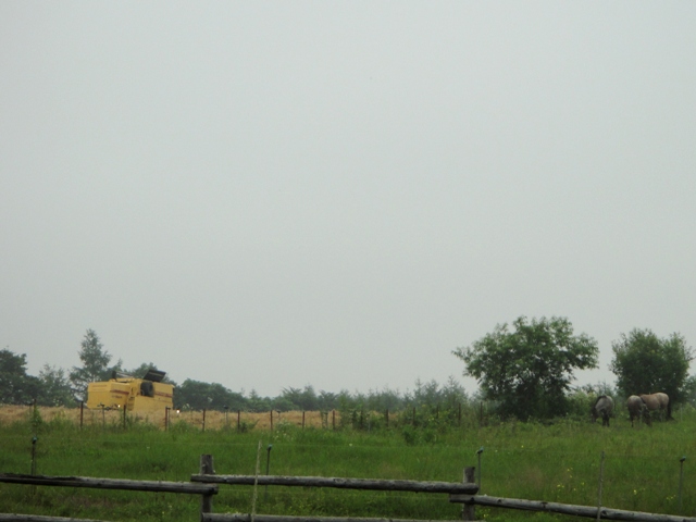 しばらくしてコンバインが家の前を通って行った