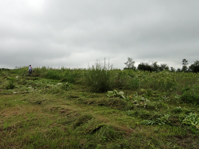 ウチも負けじと刈り払い機で牧草を切り倒して収穫する作業を進めている。