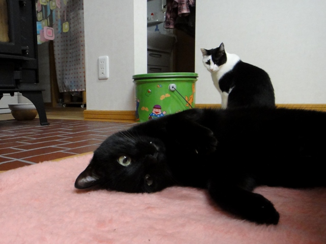 後方のクーの冷めた態度 オトスケの死んだふりは見飽きているのか?