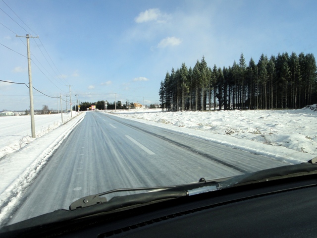 見事な凍り具合&滑り具合! 久し振りに緊張感満点の運転になり眠気が吹っ飛んだ。