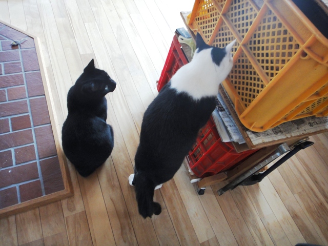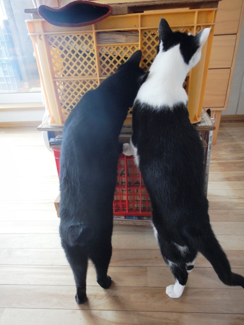 いつもとは異質な匂いなのかオトスケも参加。 クンクンとうるさい。 (ノω`*)