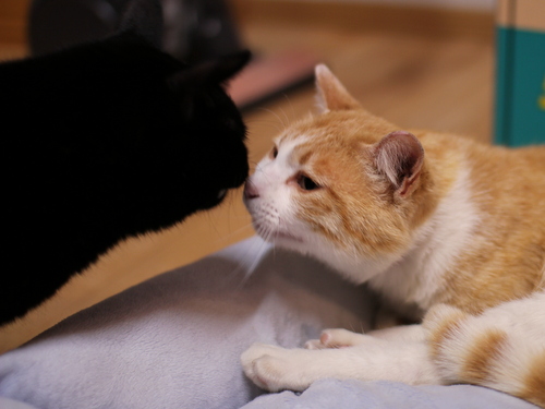 鼻と鼻で猫の挨拶。