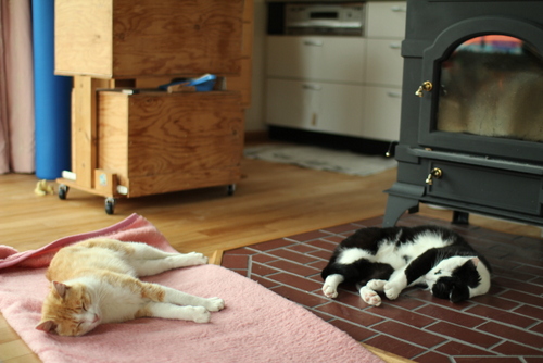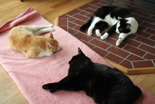 とりあえず ストーブの前で 「三匹でお昼寝」が出来た!