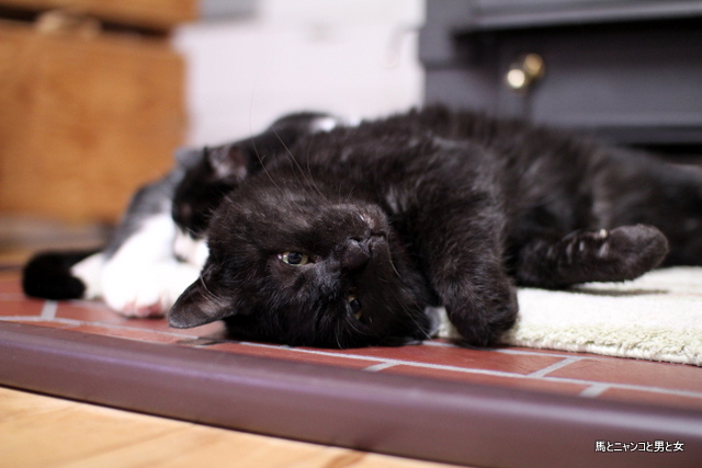 ストーブ前でのくつろぎ方、オトちゃんや