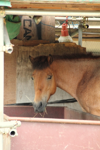 お馬さんの、食事中のお顔はこんなに面白いんですかい。
