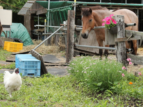 こんなときお留守番の馬とニャンコと烏骨鶏たちはどうしてるんでしょ。