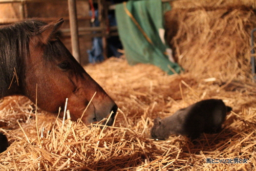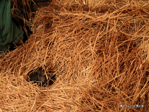 馬小屋の麦わらに穴を掘って寝ている「ロシやん」
