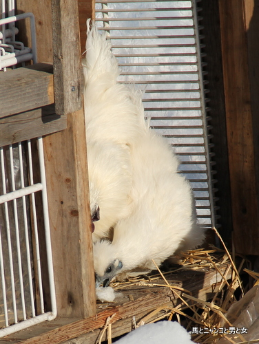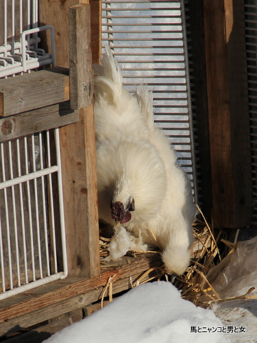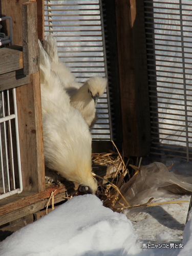 烏骨鶏ズは やはり雪の上には降りようとしない。