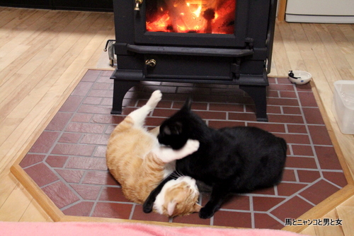 まだ若いオトまつコンビはガンガンに熱いストーブ前ではしゃいでいる。