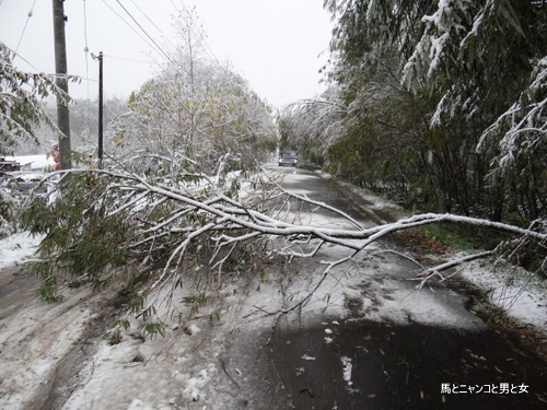 雪の重みで木が折れるの初めて知りましたよ。