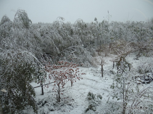 葉が落ちてないところに。。。ほんとに早すぎの雪ですね。。。