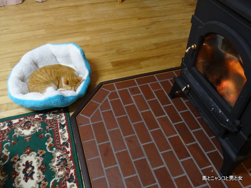 ストーブの前で気持ち良さそうやね。