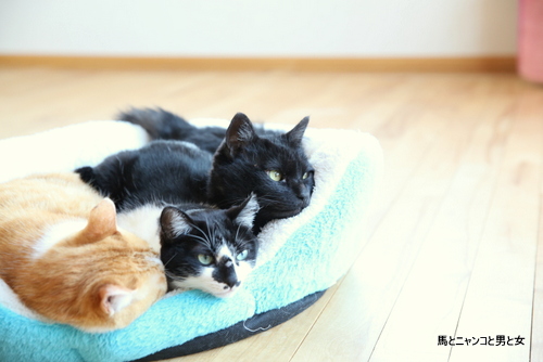 3ニャンで一緒に一つのベッドに入ってる^^