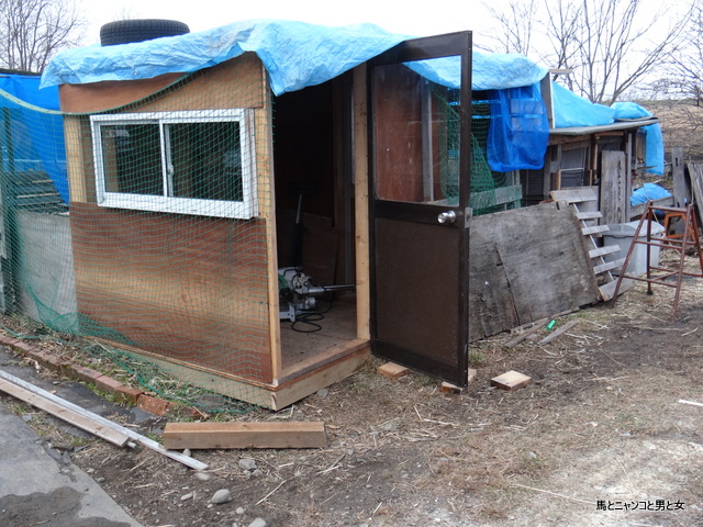 増築中の烏骨鶏ズの小屋にもう1枚ドアを付けてみた。