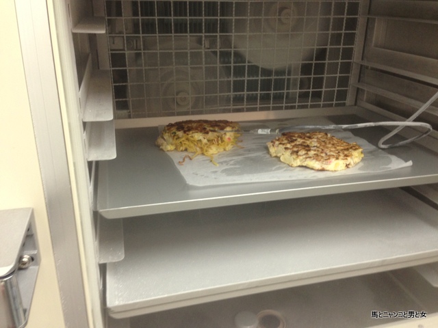 いかんいかんと気を取り直し 現地で焼いたお好み焼に芯温計を刺し