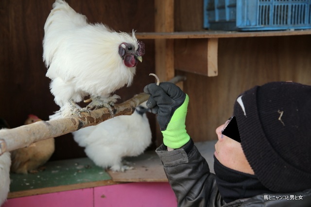 ウコッケイと人間やけれど、意志疎通は完璧やね。