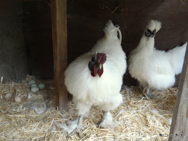 手前のはチャコちゃんの卵で青いのを産むのはヒナ(仮)だけ。