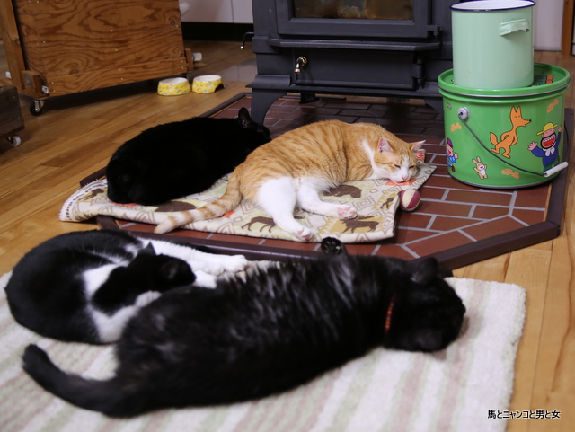 4ニャン&ストーブ。この時期でもまだ見られるとは(^_^;)