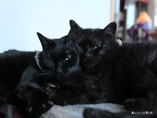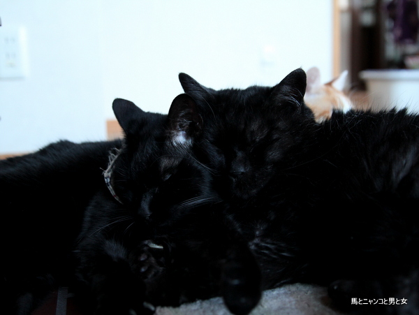 黒猫ズの頭越しに垣間見える、茶白のお耳がツボで~す❤