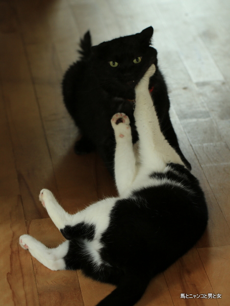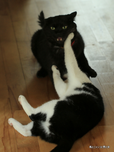 マーボーちゃんの口は、なかむら君の前肢あたりを噛んでませんか?