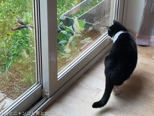 2024年05月29日 紹介 マーボーが何を見てるんかなぁ? と近づいてみると・・・ キセキレイがヒナを紹介してたんや 猫に。 なんちゅう不思議な光景。 ヒナが尻尾振って挨拶してるみたいにも見える。 めっちゃかわいい。 お母ちゃんが虫をくわえてきてヒナにあげるところを見せてくれた。なん ... カテゴリ : 猫 , 野鳥 コメント( 9 )
