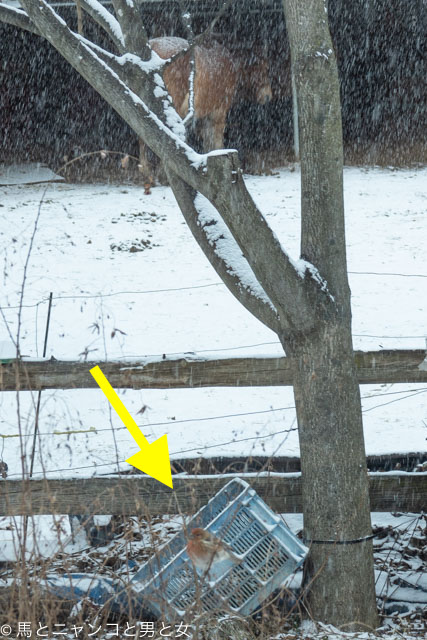2023年12月12日 ほろ酔い 朝から細かい雪が降ってた 積もりそう。 馬はどうしとるかな?と見たら手前に赤っぽい野鳥が4羽チョロチョロしとった。 メスは地味 なベニマシコの若いオスかな? 赤みが足りず「ほろ酔い」ってとこやな。 オスの成鳥はもっとこう 酔っ払いのように 「ワシのことか ... カテゴリ : 野鳥 , 猫 コメント( 16 )