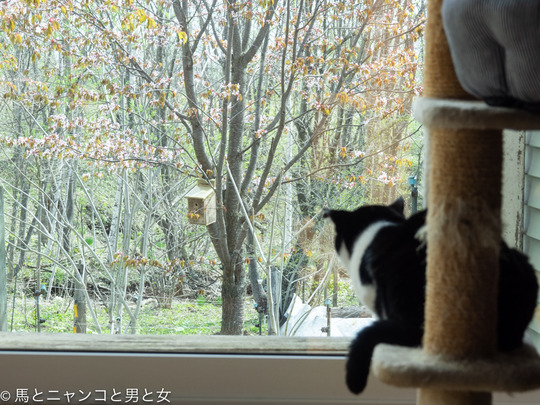2024年01月11日 内見 朝 また野鳥が巣箱の内見会に来てるかなぁとカーテンを開けた。 「あのゴジュウカラおかしくない?」とちこ太郎。 枝から下向きにコウモリのようにぶら下がってる方がそこに。でもゴジュウカラは木の幹を下向きに降りる事ができる唯一の鳥なんで大丈夫じゃ・・・ しばら ... カテゴリ : 野鳥 , 猫 コメント( 22 )